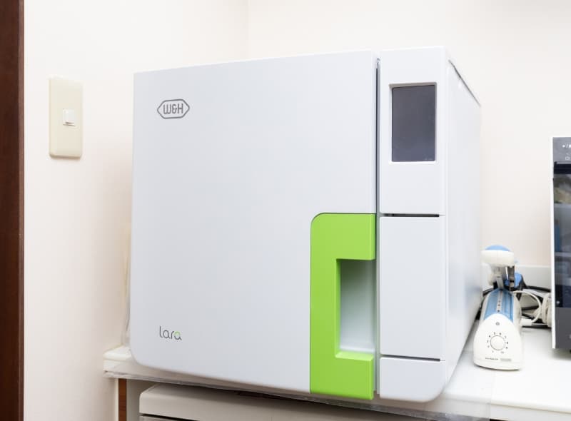 ホワイトニングライトは、オフィスホワイトニングの際に使用する専用の照射装置です。ホワイトニング剤に光を当てることで成分の反応を促進し、歯の色素を効率的に分解する役割があります。ライトは歯や歯ぐきへの影響に配慮した設計となっており、施術中の刺激や熱感を抑えながら、ホワイトニングを行うことができます。これにより、短時間で均一な白さを目指すことが可能です。歯の表面を傷つけることなく、自然で清潔感のある白さを目指せるため、オフィスホワイトニングに欠かせない設備のひとつです。
